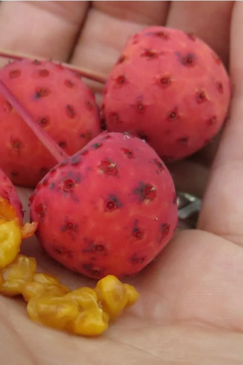 If you’ve been afraid to plant a Dogwood tree for fear of disease and/or borer problems, fear not. The dependable Cornus kousa, of which ‘Scarlet Fire’ is one, has demonstrated excellent resistance to both the dogwood borer and anthracnose disease. In some areas of the U.S., anthracnose has almost wiped out many of the native dogwoods, Cornus florida. Not only does Cornus kousa result in a tree with stronger vigor and resistance to insect and disease, it will look and grow better in full sun than other dogwood species.
